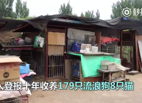 山东老人花光积蓄 十年养179只流浪狗