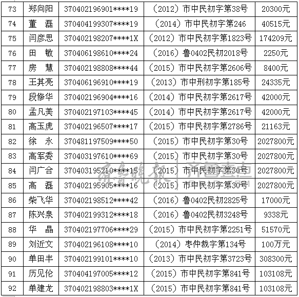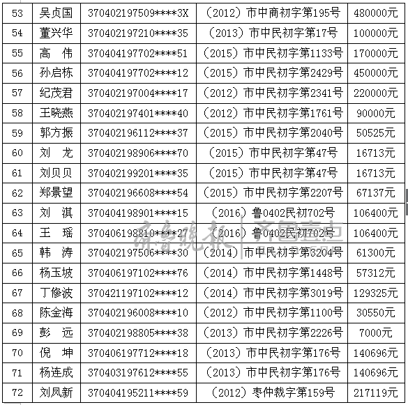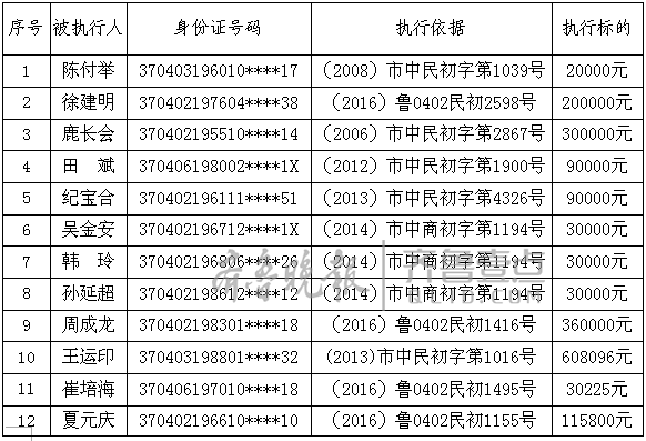 据了解,《枣庄市市中区人民法院限制消费令》责令陈付举等109名失信被执行人自该令发布之日起直至履行完毕涉案全部法律义务前,不得乘坐交通工具时,选择飞机、列车软卧、轮船二等以上舱位;在星级以上宾馆、酒店、夜总会、高尔夫球场等场所进行高消费;购买不动产或者新建、扩建、高档装修房屋;租赁高档写字楼、宾馆、公寓等场所办公;购买非经营必需车辆;旅游、度假;子女就读高收费私立学校;支付高额保费购买保险理财产品;乘坐G字头动车组列车全部座位、其他动车组列车一等以上座位等其他非生活和工作必需的消费行为。