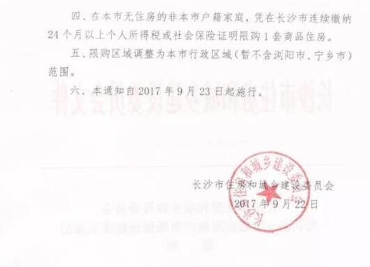 根据长沙市住建委发布的《关于进一步稳定房地产市场促进健康发展的通知》,9月23日起::