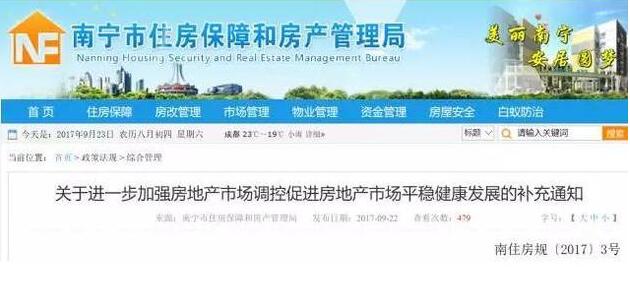 根据南宁市房管局发布的《关于进一步加强房地产市场调控促进房地产市场平稳健康发展的补充通知》,自9月22日起: