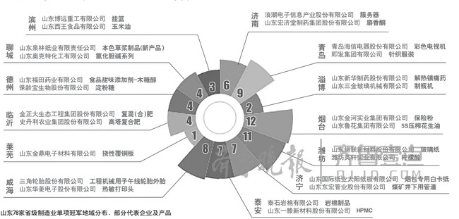 2016年,我国首批国家级制造业单项冠军出炉,12家山东企业被认定为制造业单项冠军示范企业(全国60家),10家被认定为单项冠军培育企业(全国58家),位居全国第一。而在2017年12月14日,工信部公布了第二批国家制造业单项冠军企业和产品名单,我省共21家企业入围,仅次于浙江,居全国第二。