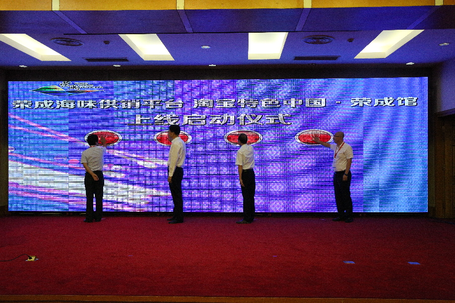 仪式上,阿里巴巴1688、京东商城、中粮我买网等电商平台的负责人对各自平台进行了推介,收到了良好的效果,部分海洋食品企业当场便与电商平台企业签订了合作协议。同时,淘宝特色中国·荣成馆、阿里巴巴荣成海味源产地特色站点、荣成海味供销平台也在活动中正式上线。特色中国·荣成馆充分利用阿里巴巴的平台资源,集中展示、宣传、推广荣成海洋食品和特色农产品,拓展荣成海洋食品产业、特色农产品的销售渠道。荣成海味供销平台采取统一质控、统一包装、统一仓储、统一加工、统一配送、统一金融服务等“六统一”模式,统一整合海洋食品企业的资源,为全市的海洋食品经销商及社会网商创业者,统一提供货源,统一仓储、统一配送。这两个项目的正式启动,为荣成海洋食品产业的发展提供了更好的平台和更加广阔的空间,对推动传统海洋食品产业的转型升级具有重要意义。