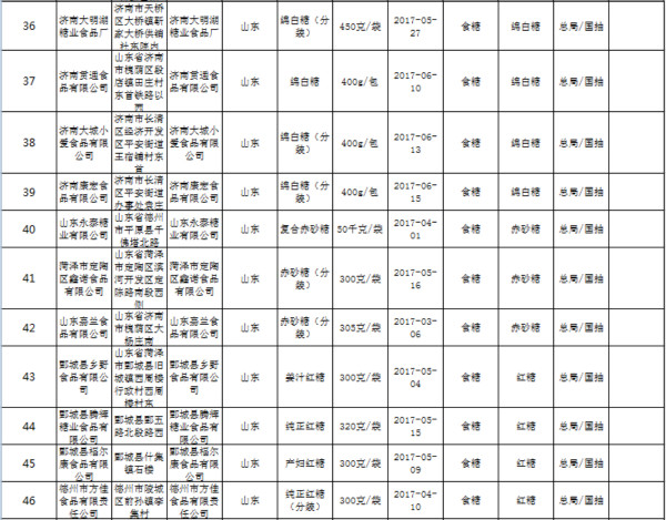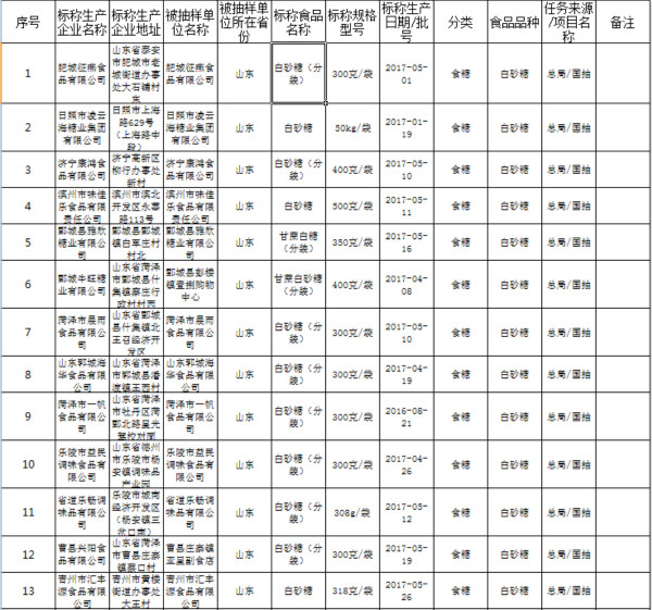 今天山东省食药监对食糖进行了监督抽检,所抽检的60批次产品检验结论均为合格。具体如下: