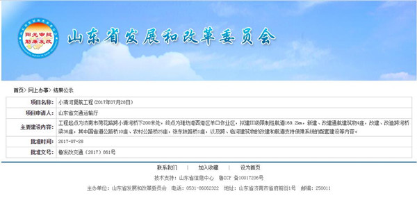 记者从山东省发改委网站获悉,备受社会各界广泛关注的小清河复航工程可行性研究报告获得山东省发展和改革委员会正式批复,标志着小清河复航工程将进入建设阶段。