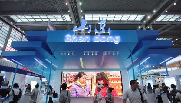 山东展区展览面积为525平米,是山东参展历届深圳文博会以来的最大面积,也是文化产业综合馆中政府组团参展的最大面积。展区整体色调为蓝色渐变黄色,契合“蓝黄两区”战略,展厅采用奔涌而来的“海浪”造型,寓意山东文化走向世界。鲁版图书、精品鲁剧、孔子文化产品、山东各地的特色文化产品在展区集中亮相,展现着山东多样且深厚的文化底蕴,给文博会增添了浓浓的“山东味儿”,吸引了众多观众前来观展。