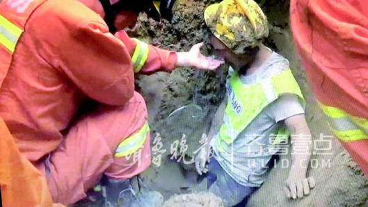 消防救援人员为保证时间及安全,在沟槽内采用铁锨、徒手等多种作业方式。 消防供图