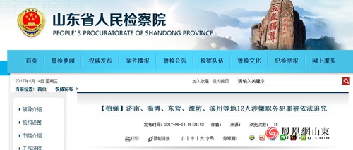 6月14日,山东省人民检察院公布一批近期被查处的涉嫌职务犯罪人员,其中涉及济南、淄博、东营、潍坊、滨州等地共12人。
