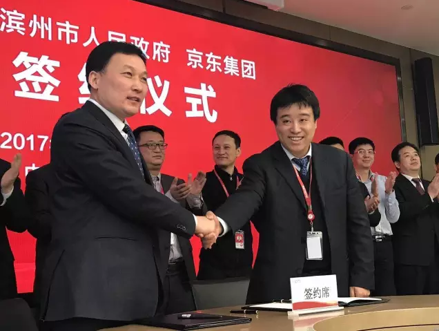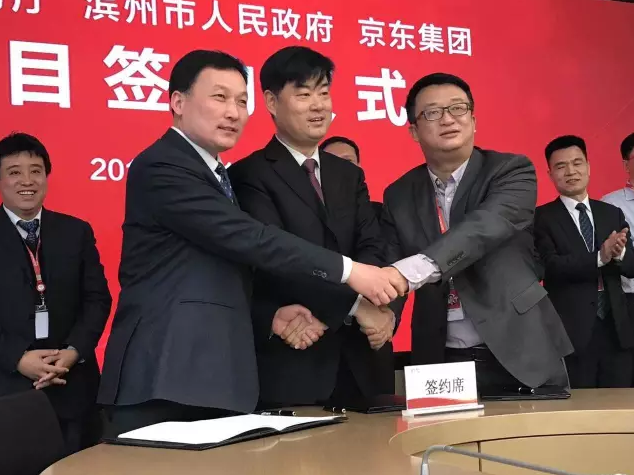 1月17日10:00,北京,京东集团总部,京东集团宣布与山东省商务厅、山东省滨州市人民政府以及滨州经济技术开发区正式签订合作协议,在山东省商务厅支持下,京东与山东省滨州市人民政府共同打造黄河三角洲云计算大数据产业基地,全面推动滨州经济技术开发区建设,提升当地产业核心竞争力,实现产业升级转型。