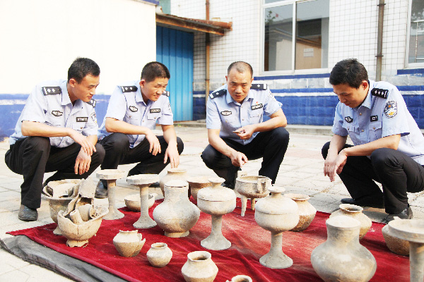 为保护好历史文物,维系文化血脉,临朐县公安局城郊派出所发挥职能作用,对涉文物犯罪严厉打击。在“破案会战”中,民警获取线索,东城街道西朱村村民马某私藏大量古代陶器,涉嫌盗掘古文化遗址、古墓葬犯罪。经缜密侦查,城郊派出所会同刑警二中队将马某抓获,并从马某家中搜出大量文物。随后,民警对查获的文物进行了清点,竟然达25件,而且全是国宝级文物!