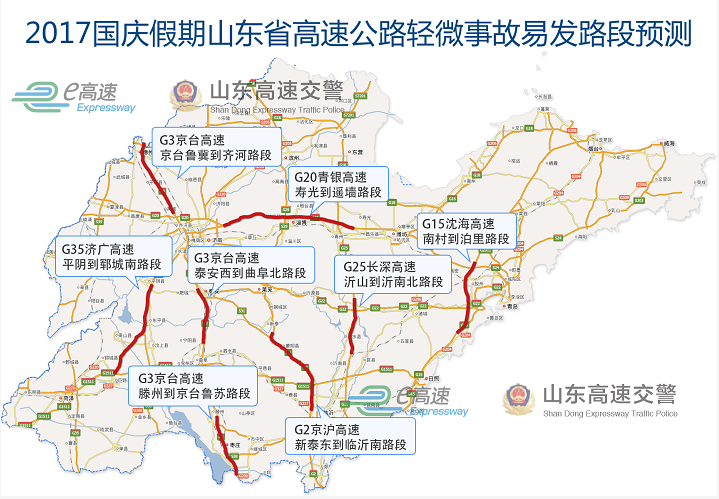 为此,山东交警为大家整理了高速公路车流量大易拥堵路段、高速公路轻微事故集中路段、危险物品运输车及重型货车限行路段等,双节出行,司机一定要注意。