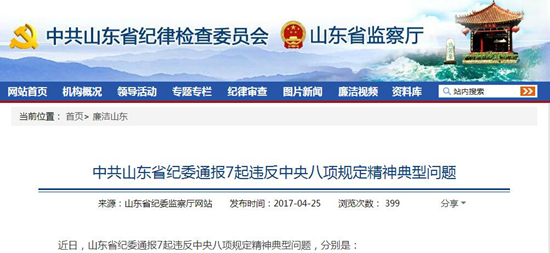 近日,山东省纪委通报7起违反中央八项规定精神典型问题,分别是: