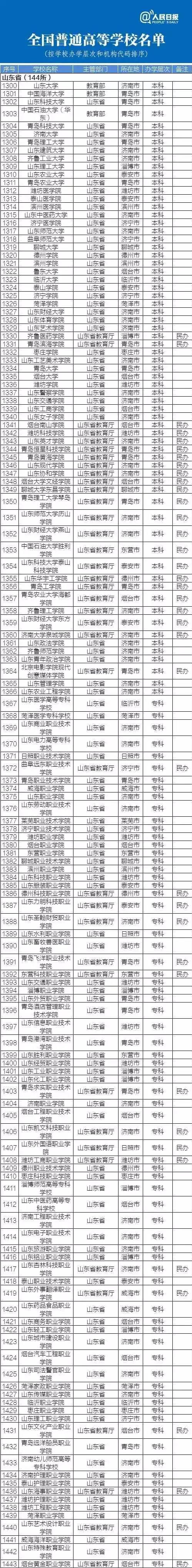以下是教育部权威发布的最新山东正规高校名单: