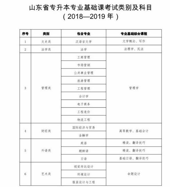 2018—2019年,我省专升本考试科目分为公共基础课和专业综合课。其中,专业综合课按照考生报考本科专业所属(或相近)类别设置考试科目,并根据该类别的专业基础知识命题。