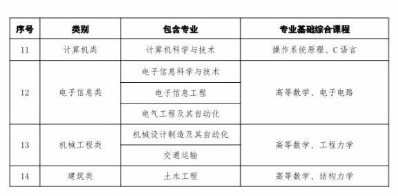 专业综合课。把考生报考的本科专业按照所属(或相近)原则划分为14个类别,以每个类别的专业基础课程为依据,命制1门专业综合课试题。