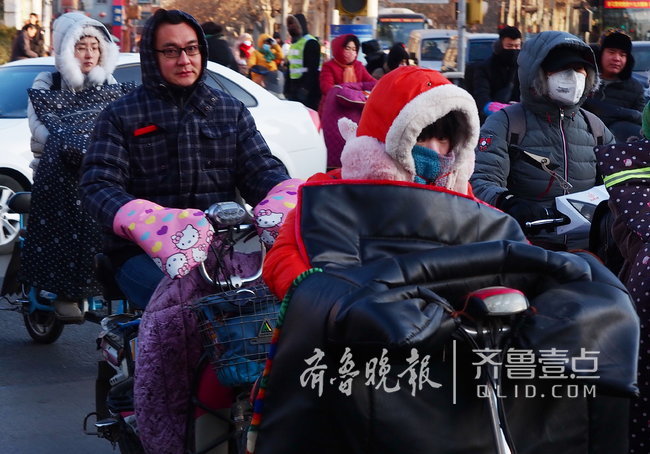 24日早晨,济南市区部分区域低温达到-11摄氏度左右,中午也刚到零度左右,街头全天寒气逼人。齐鲁晚报·齐鲁壹点记者周青先摄