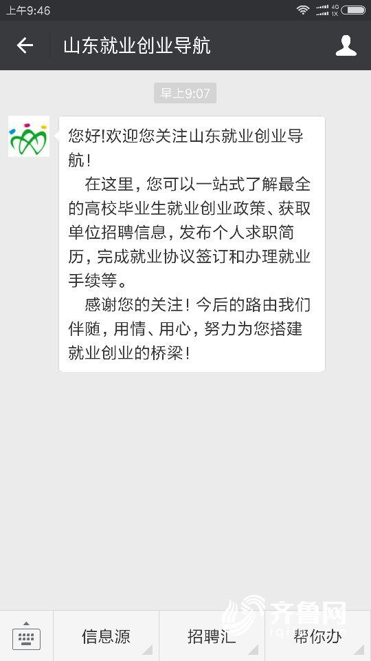 今后,在山东就业创业导航微信平台将第一时间发布教师招考、用人单位招聘、各地就业创业政策等各类权威信息,请广大毕业生和社会各界关注。在微信上,搜索“山东就业创业导航”公众号,点击关注即可。