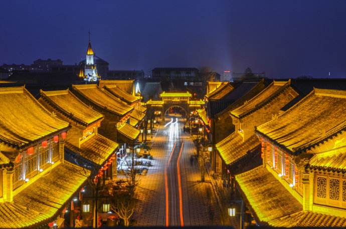 夜游青州古城 流光溢彩里穿越数千年历史