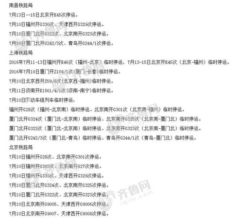 根据中国铁路客户服务中心通知显示,未来五天,以下多趟途径山东的铁路将停运: