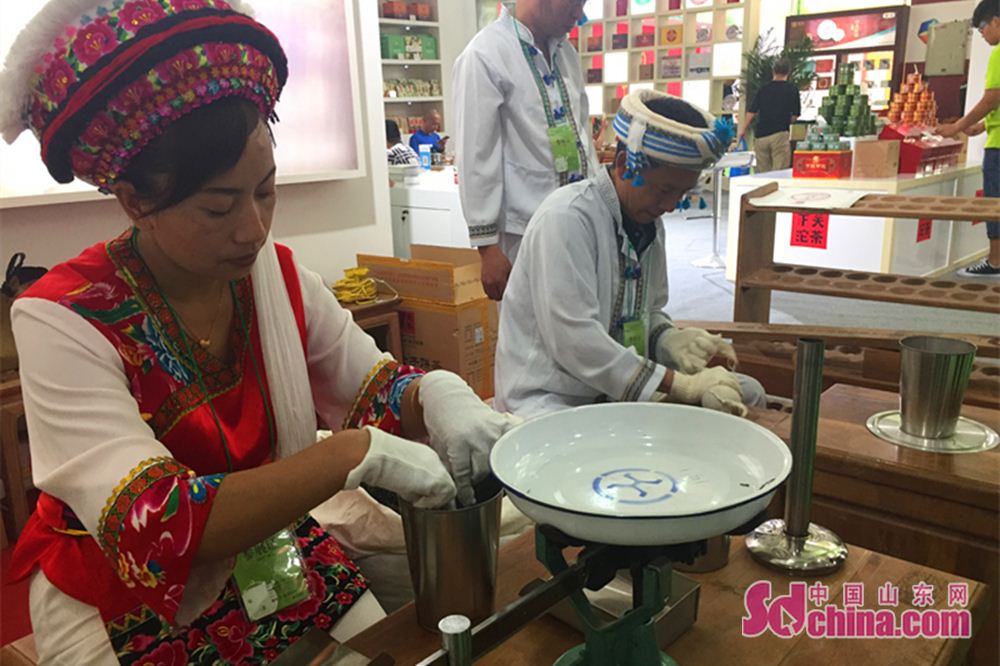 传统手工制茶技艺亮相本届茶博,技术精湛,引得不少市民驻足观看。展会现场茶香四溢,各展位前门庭若市,各参展商带来自己的专业茶艺师,布置好精美雅致的茶席,细致耐心地接待热情的济南茶友。