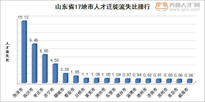 据《2017山东省白领就业市场蓝皮书》一书中提供的数据,2017年山东17市人才流失比最高的是菏泽,为15.12,紧随其后的是临沂,流失比为9.49。