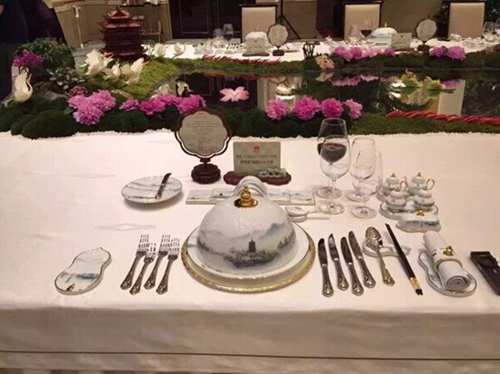 G20峰会欢迎宴会的餐具太漂亮了!其设计创作灵感来源于水和自然景观。整套餐瓷体现出“西湖元素、杭州特色、江南韵味、中国气派、世界大国”的G20国宴布置基调。图案采用传统“青绿山水”工笔带写意的笔触创作,主题为“西湖盛宴西湖韵”。