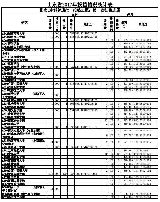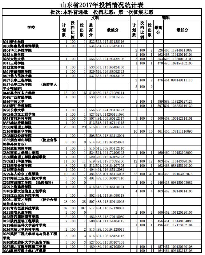 今年理科最高分为640分,第一次征集志愿投进了华北电力大学(北京)。如果没有滑档的话,这位考生只要志愿服从调剂,基本能够被山东大学等985名校录取。理科投档的最低分为433分,刚刚达到本科线。