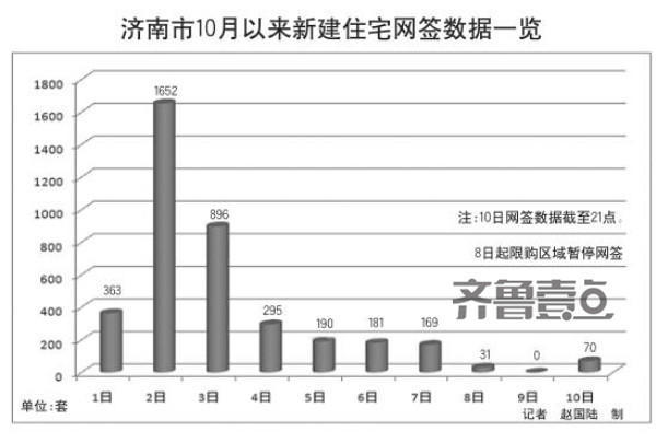 限购令出台一周,山东济南新建商品住宅网签量出现断崖式下跌,比限购前下降了76%,济南楼市进入降温期。此外,业内人士指出,网签量下降的客观原因还有两个:新政规定网签必须有限购证明;8日起限购区域的楼盘暂停网签。据悉,国庆节前后,至少12个楼盘开盘,潜在的网签量不小,预计网签系统升级完成后,成交数据或许会“补涨”。