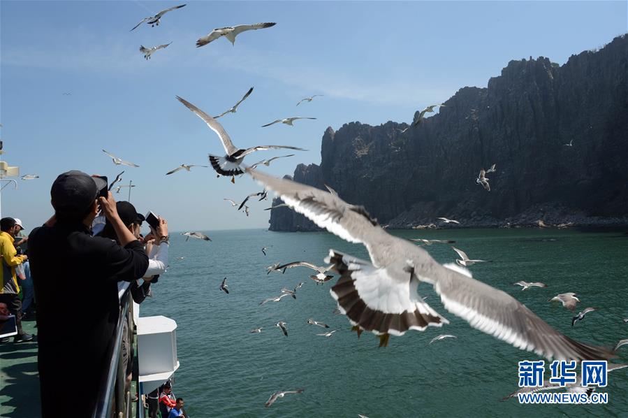 随着夏季旅游旺季的到来,山东省长岛县万鸟岛吸引众多游客前来休闲游玩。万鸟岛又称车由岛,岛上栖居着上万只海鸥,所以被称为“万鸟岛”。