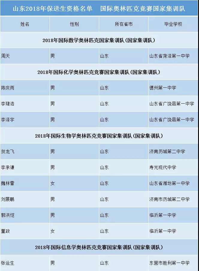 近日,教育部阳光高考信息公开平台公布了2018年保送生资格名单,山东共有310名学生上榜,包括省级优秀学生、外国语学校推荐保送生和国际五项学科奥林匹克竞赛国家集训队员三大类,山东第二类保送生资格人数最多。考生获得保送资格后,还要参加高校的选拔,最终进入录取名单才算成功保送。