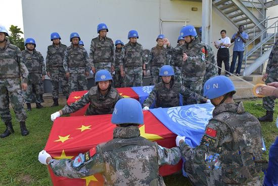 当地时间7月16日下午,中国南苏丹维和步兵营为李磊和杨树朋两位烈士举行追悼会,步兵营官兵、中国军队工作组和我驻南苏丹大使馆200余人参加。联合国秘书长特别代表罗伊女士率联南苏团40余名官员出席。联南苏团部队总司令约翰逊中将授予两位烈士联合国和平勋章。记者了解到,运送两位战士灵柩的专机将于近日从坎帕拉返回祖国。