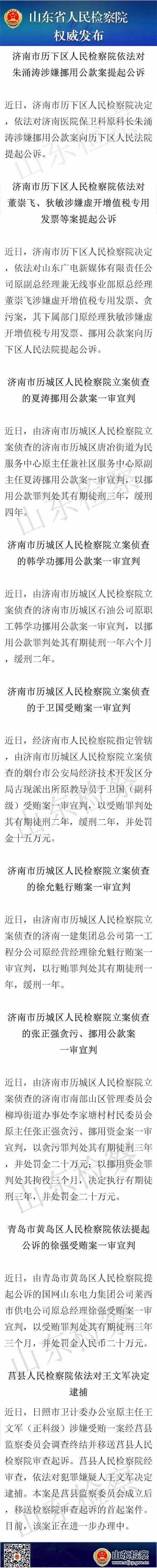 凤凰网山东从山东省人民检察院获悉,济南、青岛、日照等地10人涉嫌职务犯罪被依法追究。