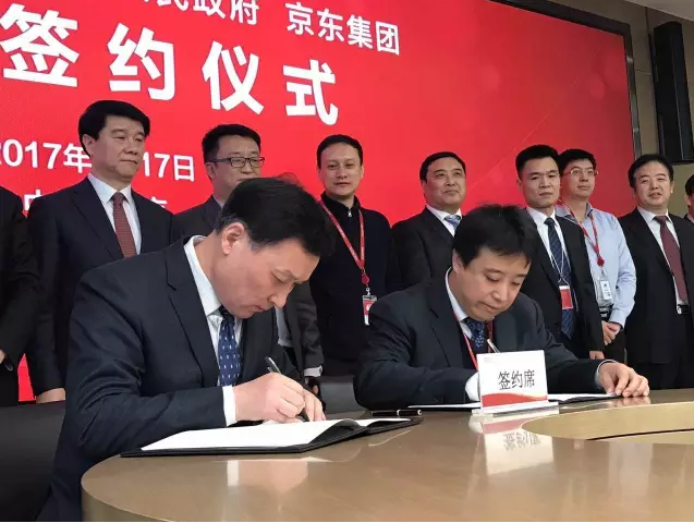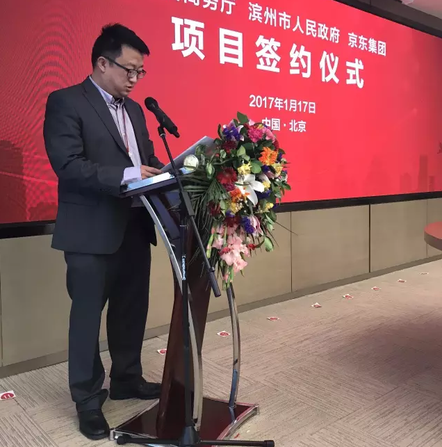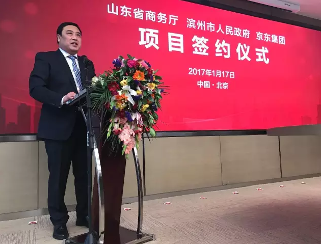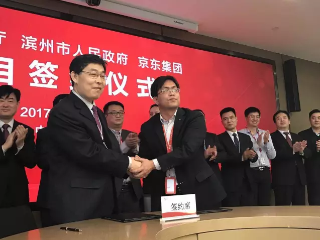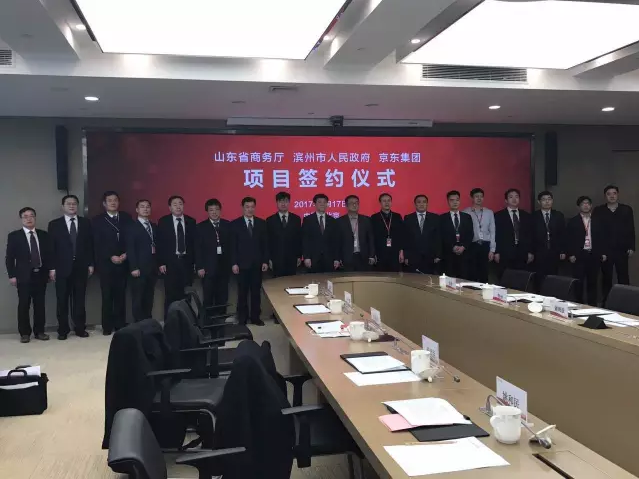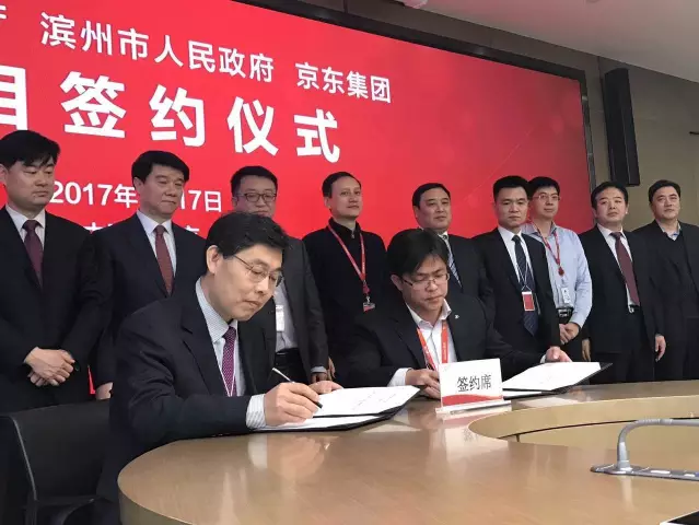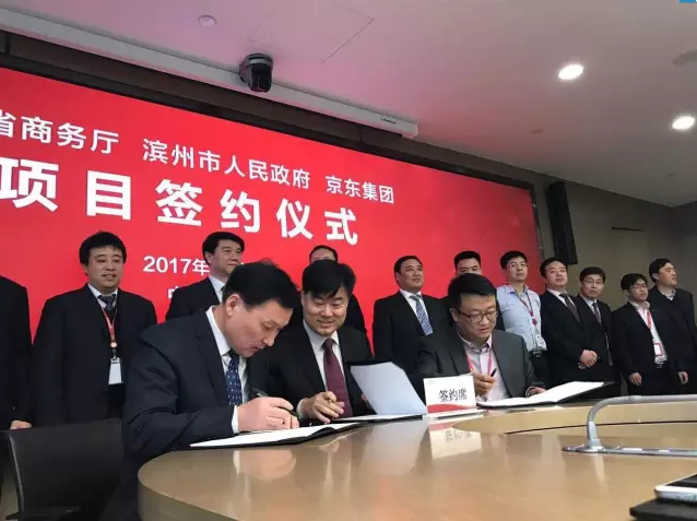 1月17日10:00,北京,京东集团总部,京东集团宣布与山东省商务厅、山东省滨州市人民政府以及滨州经济技术开发区正式签订合作协议,在山东省商务厅支持下,京东与山东省滨州市人民政府共同打造黄河三角洲云计算大数据产业基地,全面推动滨州经济技术开发区建设,提升当地产业核心竞争力,实现产业升级转型。