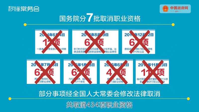 5年来,国务院常务会议7次审议,共取消434项职业资格。
