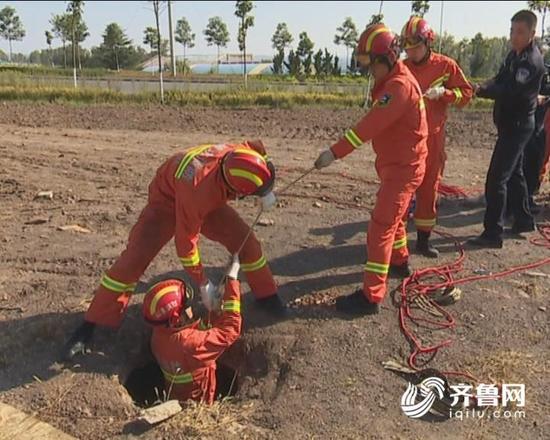 10月24号下午1时16分,山东潍坊临朐消防大队接到报警称,在临朐东城街道电镀中心附近,一名老人不慎跌入深井被卡住,可能有生命危险,情况十分危急,消防官兵立即赶往现场处置。