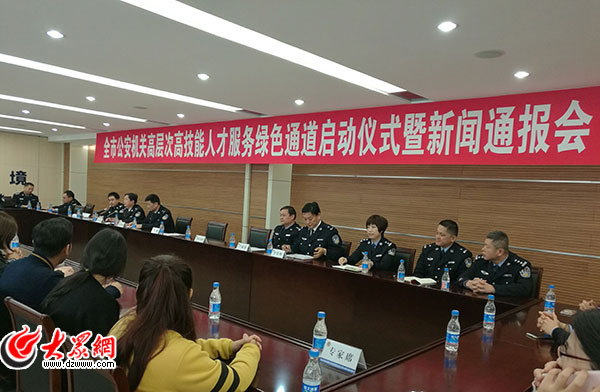 济南市公安局今天上午召开新闻通报会,为引进的外籍高层次高技能人才办理相关业务开辟绿色通道。