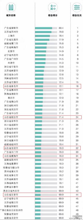 据《山东新闻联播》报道,“2015中国外贸百强城市”名单日前公布,山东有青岛、烟台、日照、威海、东营、聊城、济南、潍坊和淄博9座城市入围,数量居全国第四。其中,青岛排名16位。外贸百强城市评选标准包括外贸水平竞争力、结构竞争力等5项共25个指标。