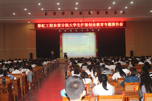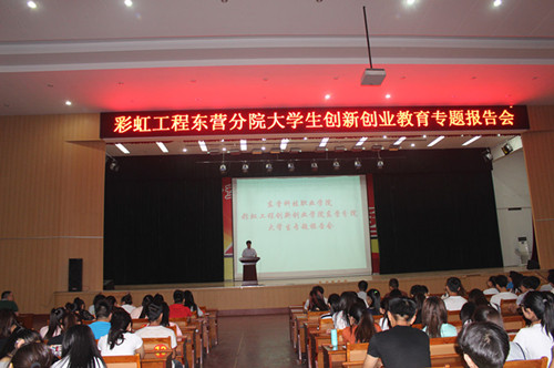 经济山东6月3日讯 “创新创业不仅仅需要热情,更需要全新的思维、艰苦的努力和脚踏实地的工作。今天就让我们以大学生创新创业新思维专题报告会,开启你人生的创业之路”。6月3号上午,彩虹工程创新创业学院东营分院首场大学生创新创业教育报告会举办。