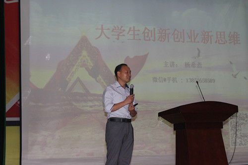 互联网创业导师、山东省企业创新创业导师团导师杨希斋为广大师生作了主题为“大学生创新创业新思维”专题报告。杨希斋从宏观的创业创新,讲到大学生创业创新的心态和问题,并结合实际案例为大学生讲解了创业创新中的一些技巧,报告深入浅出,理论结合实际,赢得了师生的阵阵掌。
