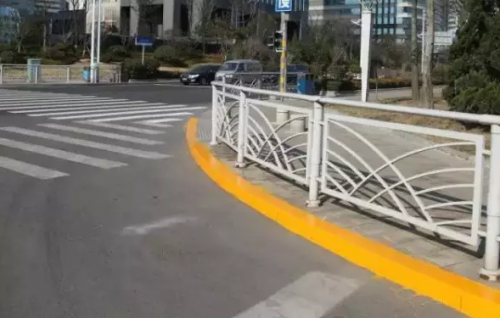黄色虚线的马路牙子是允许临时停车、即停即走