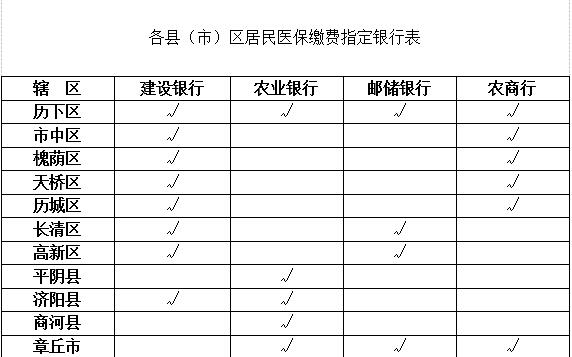 2017年度济南各县(市)区居民医保缴费指定银行。
