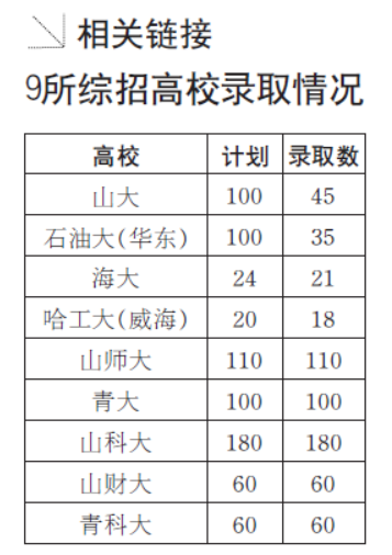 不过,在这9所高校中,也是冷热不均,5所省属高校,全部完成了招生计划,就连招生计划180个的山东科技大学,也是顺利报满;而山大和石油大学(华东),录取人数不及招生计划的一半;海大24个招生计划中,最终录取了21人,哈工大(威海)的20个招生计划,最终录取了18人。